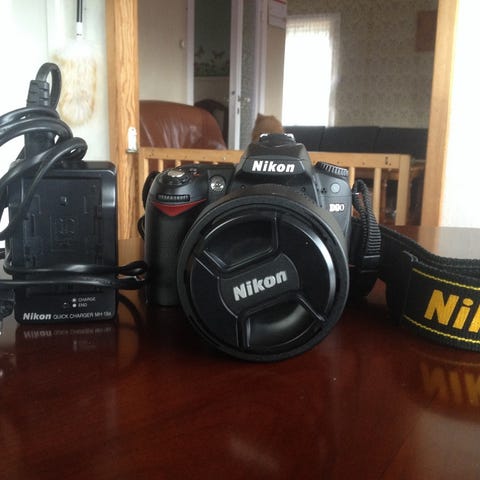 Selger et Nikon D90 med én del utstyr og bag. (Se bilder) Kameraer var en gave fra en venn for 2 år siden, men er for avansert for meg.