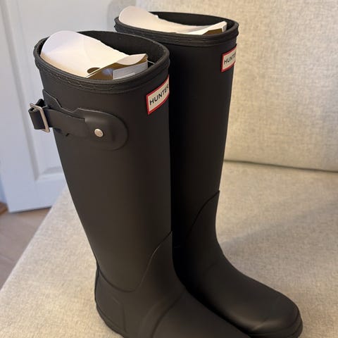 Selger mine fine og elegante korte Hunter-regnstøvler. Har kun prøvd dem én gang, så de ser ut som nye 🤗