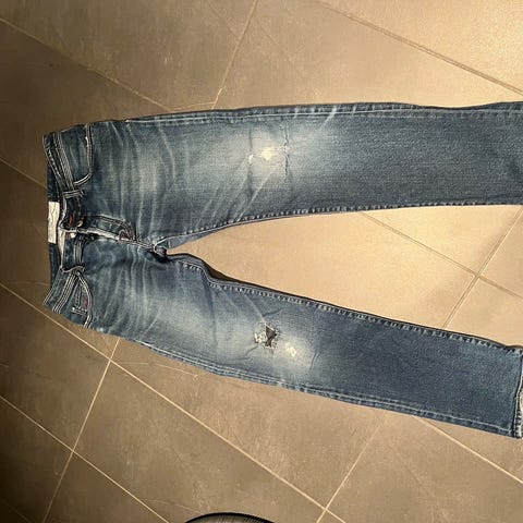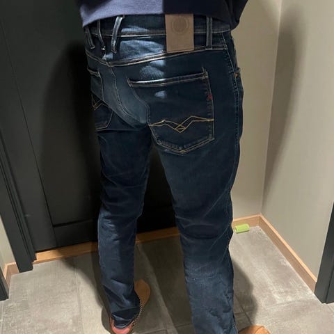 Replay jeans i denim for herre. Buksen er i størrelse XS med livvidde W23. Fargen er blå denim med vaskede detaljer. Klassisk 5-lommersmodell med glidelås og knapp i front. Passer til hverdagsbruk og kan kombineres med ulike overdeler for et casual uttrykk.