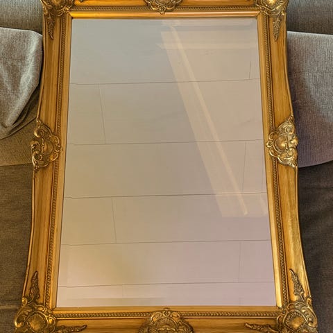 Staselig speil i antikk stil. Stått til pynt på hytte på et lite bad.