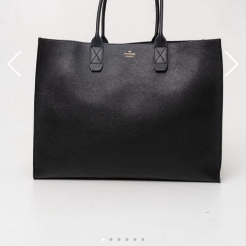 Mulberry skinnveske for dame i svart lær. Vesken har to skulderremmer og åpen topp med karakteristisk metallplate og vrilås. Innvendig er vesken romslig med åpent hovedrom og en egen lomme som passer til mindre gjenstander som nettbrett, dokumenter eller lignende. Egner seg som hverdagsveske, jobbveske eller shopper-veske der det er behov for god plass til personlige eiendeler.