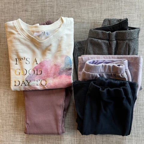 7 bukser (3 av de er klipt i bena da de var for lange, se bildet) brukt av dame som er 160 høy
