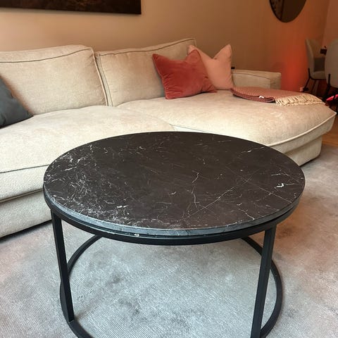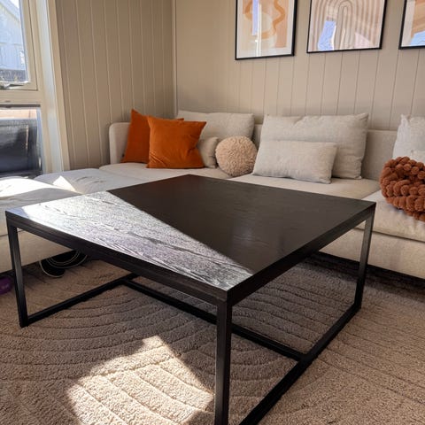 Pent brukt bord fra kremmerhuset. Noen små men ubetydelige bruksmerker i glassplaten. Små riper som ikke synes for det blotte øyet. Vanskelig å ta bilde av pga gjenskinn i glasset.