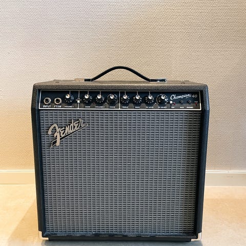 Forsterkeren har toppanel med flere kontroller for volum, gain, EQ og effekter, samt inngang for gitar og hodetelefonutgang. Effekt på 30 watt gjør den egnet til øving hjemme, bandrom og mindre spillesteder. Kabinettet er kompakt med bærehåndtak på toppen for enkel transport. Strømkabel følger med, som vist på bildene.