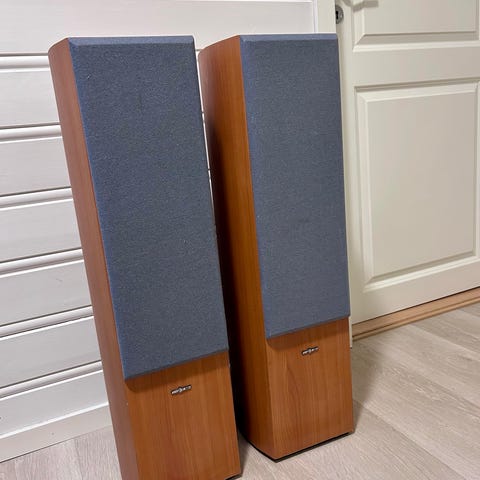Dette er ikke bokhylle modellen, men gulvstående høyttalere som spiller meget bra med bra trøkk.