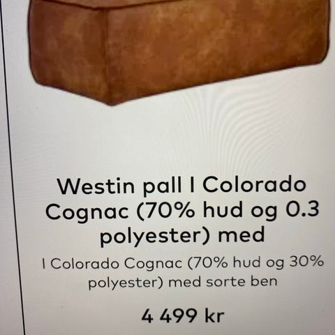 Puff fra Jysk selges som den er, den har stått på pynt, litt av «fyllet» er tatt ut, for å få en mykere følelse.