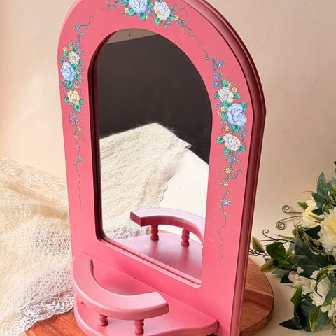 Skikkelig fin som pynt på kommode, nattbord eller i vinduskarm, og gjør mye ut av seg selv også når den ikke er i bruk. Se bilder for mål. 🌸