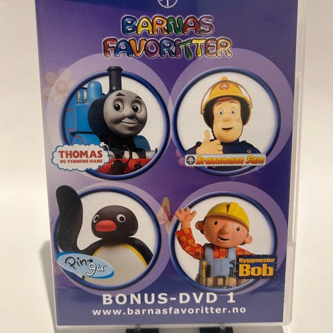 Barnas Favoritter Vinterspecial DVD med vinterepisoder fra flere kjente barnefigurer. Inneholder blant annet innslag med Byggmester Bob, Thomas Toget, Pingu og Angelina Ballerina. Format: DVD, norsk utgave. Egnet for barn med aldersgrense som angitt på omslaget.