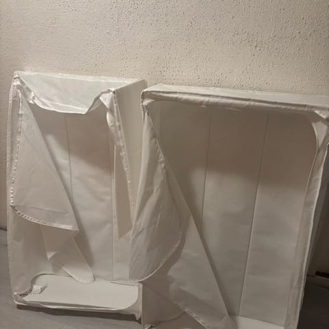 Brukt hvit IKEA oppbevaringsstativ med plastkasser selges. Må hentes