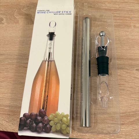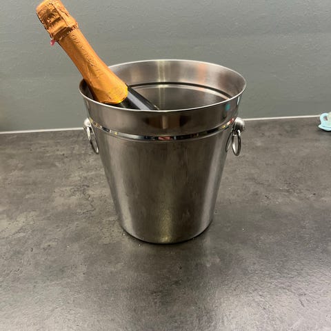 Vinkjøler fra Lindemans i dobbelt klart materiale /plexiglass med sølvkant som holder flasken kald, merket Lindemans 1843.