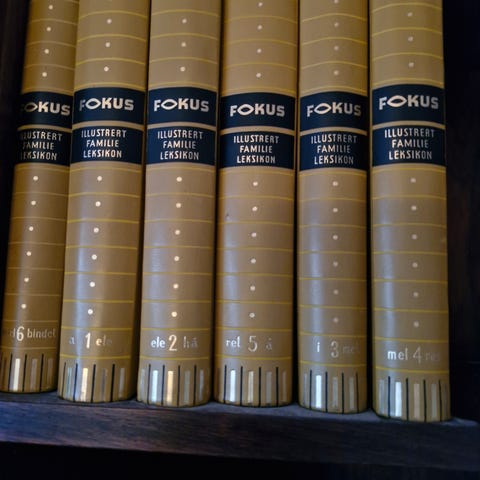 Tags: gulldekor, dekorbøker, 50-tallet, bibliotek, leksikon, brun, skinn, leksikon, oppslagsverk, faglitteratur