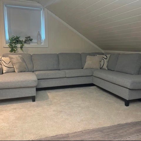 Selger en stor og komfortabel grå U-sofa da jeg har kjøpt ny sofa. Sofaen er ca. 5 år gammel og har vært godt tatt vare på. Den er fortsatt i god stand og har mye bruk igjen.