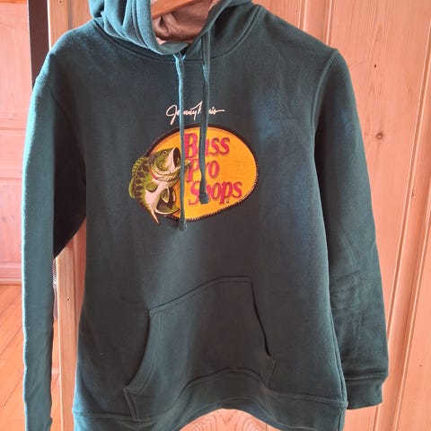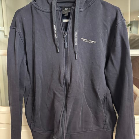 Blå hettegenser med promoteringstrykk for NDC Conferences i størrelse M.