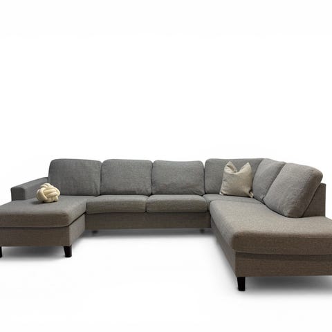 Stor, romslig og komfortabel Havanna U-hjørnesofa fra A-møbler i en tidløs grå farge selges til en rimelig og billig pris. Sofaen har god sittekomfort og god plass til hele familien, perfekt til både avslapning og sosiale sammenkomster. Sidene er vendbare.