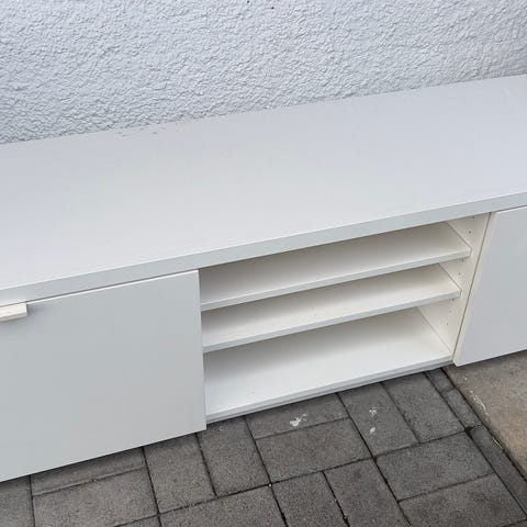 Flott TV-benk selges. Toppen er i glass og understellet er i solid stål, så den er litt tung. Anbefaler at dere er to som henter. To store skuffer og to rom med plass til dekoder, spillkonsoller osv. Hull i ene hyllen for å la ledninger komme ut.