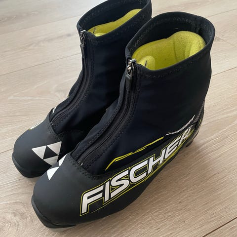 Selger Fischer lanngrennski med staver og skisko i størrelse 37.
