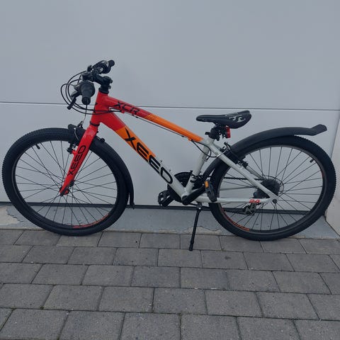 En veldig fin og god sykkel med 24 gir (Shimano) som passer til alderen 8-12 år, utstyrt med bagasjebrett, støtte, flaskeholder, ringeklokke, refleks og lys foran, refleks bak og skjermer både foran og bak. Oppbevart inne i sportsbod.