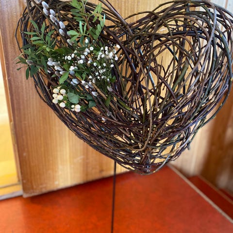 Eller med blomster. Fin på døra, eller som oppsats på bordet. Ikke en bruksgjenstand. Og tåler ikke å falle.