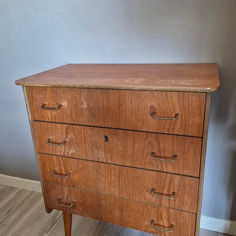 Teak Kommode i tre med fire skuffer
