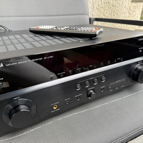 Yamaha AV-receiver med DAB+ radio, Bluetooth, WiFi og HDMI-tilkoblinger.