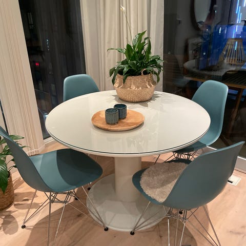 Rundt spisebord.