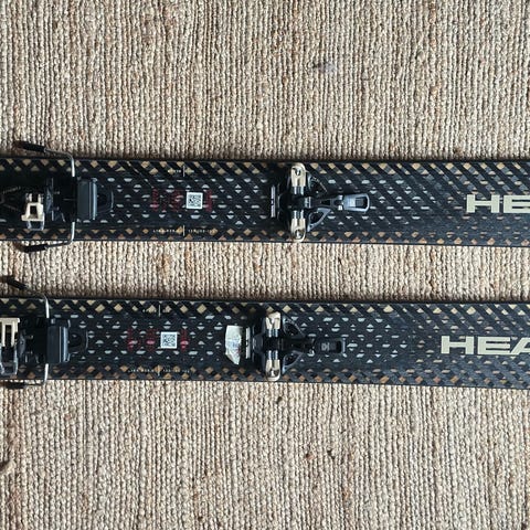 Montert med Salomon Strive 14 binding. De er stilt inn til skisko på 325 mm, men kan justeres begge veier.