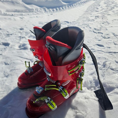 Selger slalomsko / alpinsko. Skoene framstår som brukt med i god stand med kun normale bruksmerker.