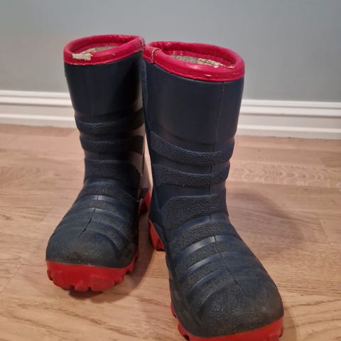 Viking vinterstøvler/cherrox for barn i størrelse 27. Støvlene er unisex og kommer i blå farge med rød såle og kant. Grovmønstret yttersåle gir godt grep. Overdel i gummi med tekstilfôr på innsiden.