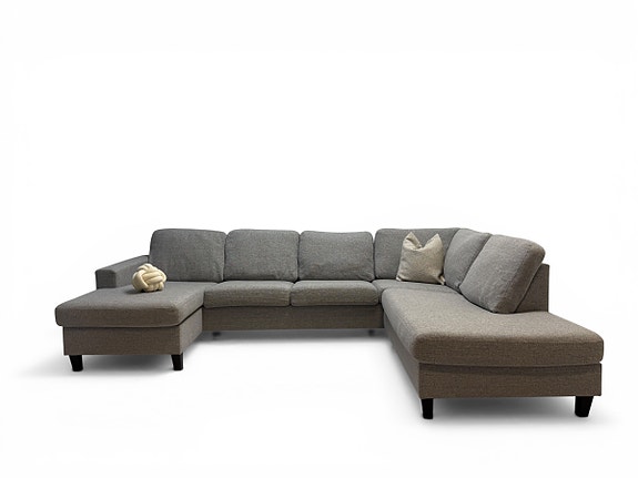 Designet er minimalistisk og skandinavisk, med brede armlener, gode sitteputer og en romslig sjeselong som gjør sofaen perfekt både til avslapning og sosiale stunder.