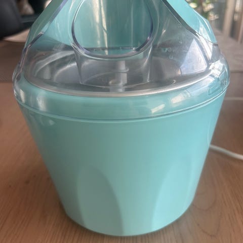 Selger en praktisk Menuett iskremmaskin som gjør det enkelt å lage hjemmelaget iskrem, sorbet eller frozen yoghurt.