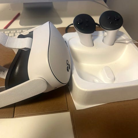 Selger mitt oculus quest 2 headset da det ikke brukes lengre. Alt fungerer som det skal og det følger med en 5 meter oculus link cable.
