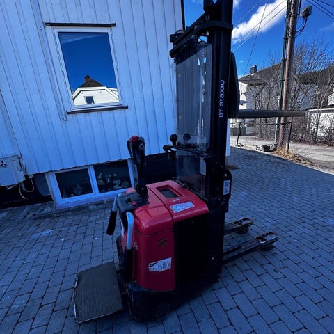 Truck med elektrisk drift og styrehåndtak med betjeningsknapper.Displayet på trucken fungerer ikke, men det er montert en liten skjerm på batteriet som viser batterinivå.