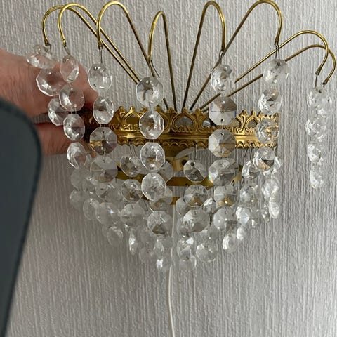 Vintage sjarmerende LYS & STIL vegglampe i messing og glass med krystalldusk