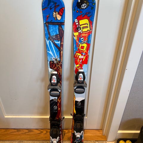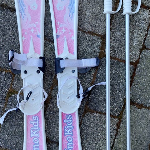 Barneski med bindinger 70 cm, bindingene er justerbare fra 195 til 240 mm, se mine andre auksjoner. Jeg har mange ski.