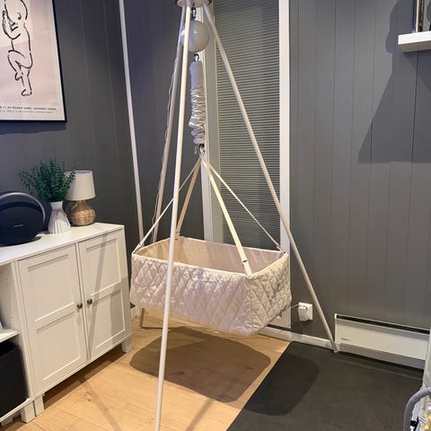 Selger en Moonboon med flat vugge, madrass, motor og stativ.