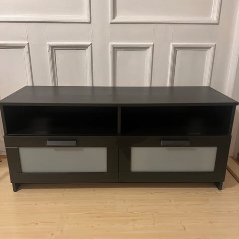 Fin og solid tv-benk fra Bohus. Hel og pen bortsett fra en liten ripe på midten bak, denne vil ikke synes når man har en tv oppå benken