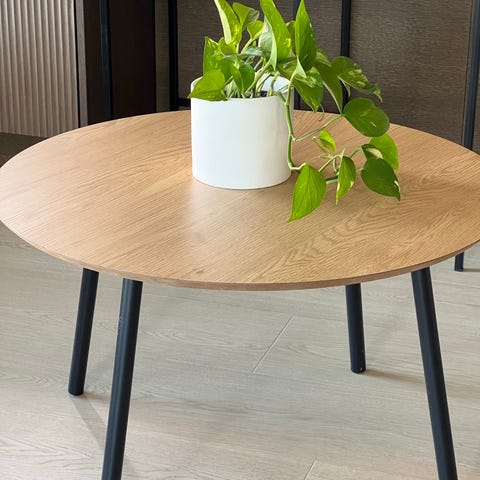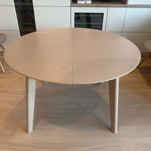 Pent brukt trebord fra Jysk. Omkrets: 60 cm. Høyde: 45 cm. Kan hentes i Dronningens gate i Trondheim eller sendes med fiksferdig.