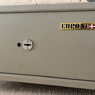 Gammel safe gis bort ved henting. Den har har vært brukt sist i et skytterhus.