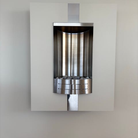 Vegghengt biopeis med rektangulær brenner og glassfront. Peisen er utført i hvit overflate med klar glassplate som skjerm foran brenneren. Egnet for innendørs bruk der man ønsker en dekorativ flamme uten tradisjonell skorstein. Drives normalt av bioetanol. Kan monteres på vegg. Veggfeste medfølger. Ca Høyde 61 cm Bredde 60 cm Dybde 23 cm