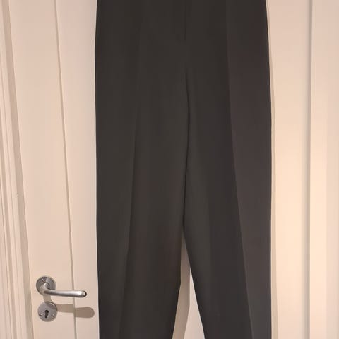 H&M bukse for dame i størrelse M. Buksen er svart og laget av merinoull. Klassisk modell med enkel linning og press i bena. Passer til bruk både på jobb og til hverdags der man ønsker en enkel og nøytral ullbukse.