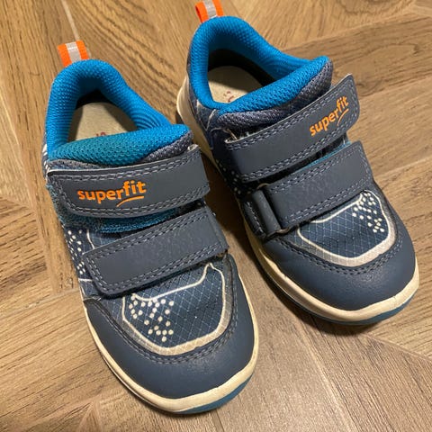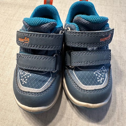 Superfit barnesko for gutt i størrelse 30. Skoen er i blå farge med lyse detaljer og har overdel i syntetisk materiale og tekstil. Den har to borrelåsstropper som gjør det enkelt å ta skoen av og på, samt å justere passformen. Yttersålen er lys og mønstret for godt grep. Egnet som overgangssko da Gore Tex