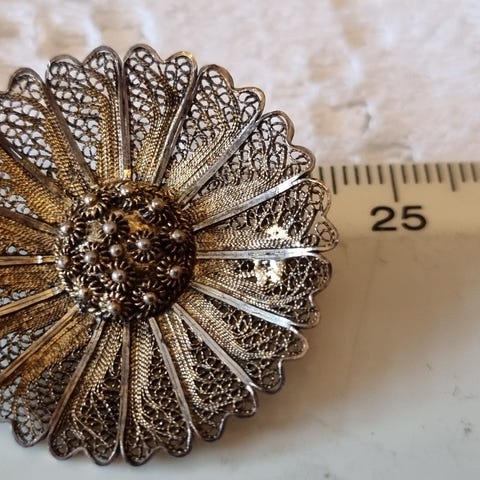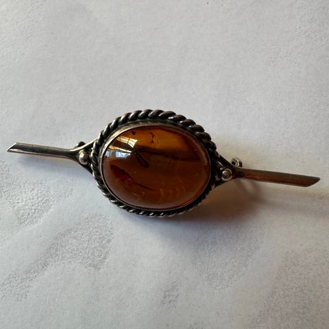 Ældre nål med tigerøje. Stemplet er lidt slidt, men jeg tror at der står 830. Fingerer helt fint.