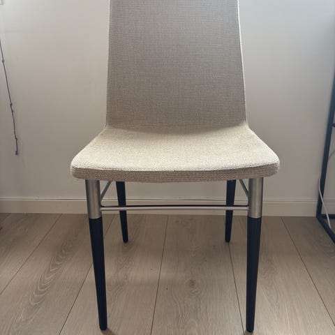 Selger fire spisestuestoler, pent brukt. Grått stoff på sete og rygg. Ben i børstet stål og sort hardplast. Kjøpt på IKEA ca. 2015.