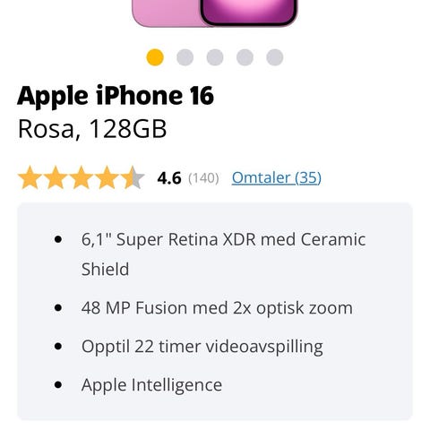 Apple iPhone 16 smarttelefon 256 GB hvit