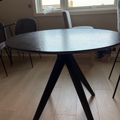 Veldig stødig og god bord. Den er godt brukt og har noe flekker på overflaten. Jeg brukte hvit kontaktpapir som få kjøpt på Clas ohlsen. Ca 100 cm i bredden og kan utvides med ekstra plate.
