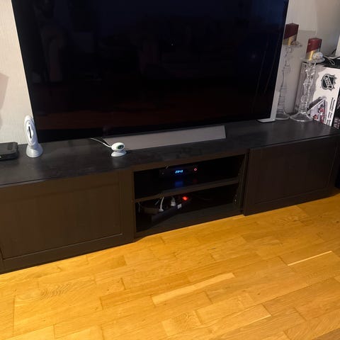Selger en pent brukt Ikea Havsta TV-Benk. Den er ikke synlig brukt, har ingen merker. Mål på bildet