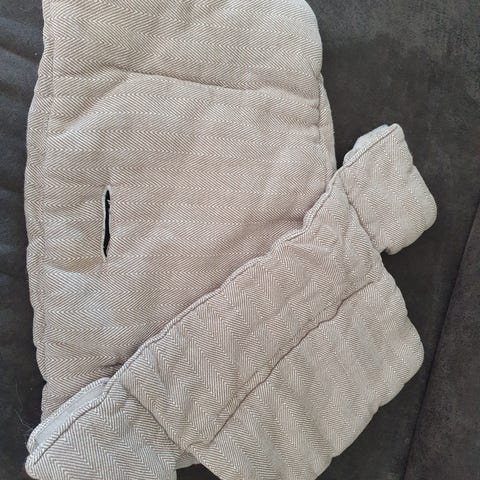 Stokke høy barnestol stoltrekk og pute i mørk grå tekstil. Settet består av polstret setepute og ryggpute/trekk som festes rundt setet på barnestolen. Trekket har strikk og åpninger til seler etter stolens utforming. Tekstilmateriale i vevd stoff, egnet som ekstra eller utskiftbart trekk og pute til Stokke høy barnestol.
