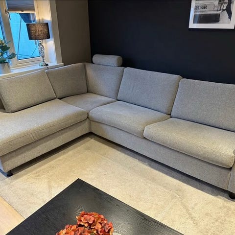 Pent brukt SITS Palma hjørnesofa i lys grå farge selges rimelig.