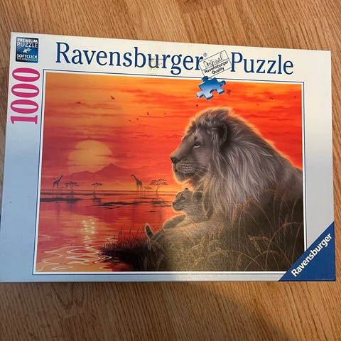 Ravensburger puslespill med motiv av en løve. Puslespillet består av 1000 brikker.