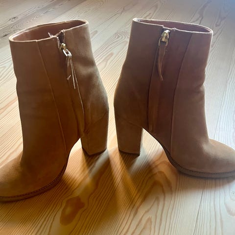Filippa K støvler i størrelse 38. Ankelhøye støvler i semsket skinn i beige farge. Pent brukt.